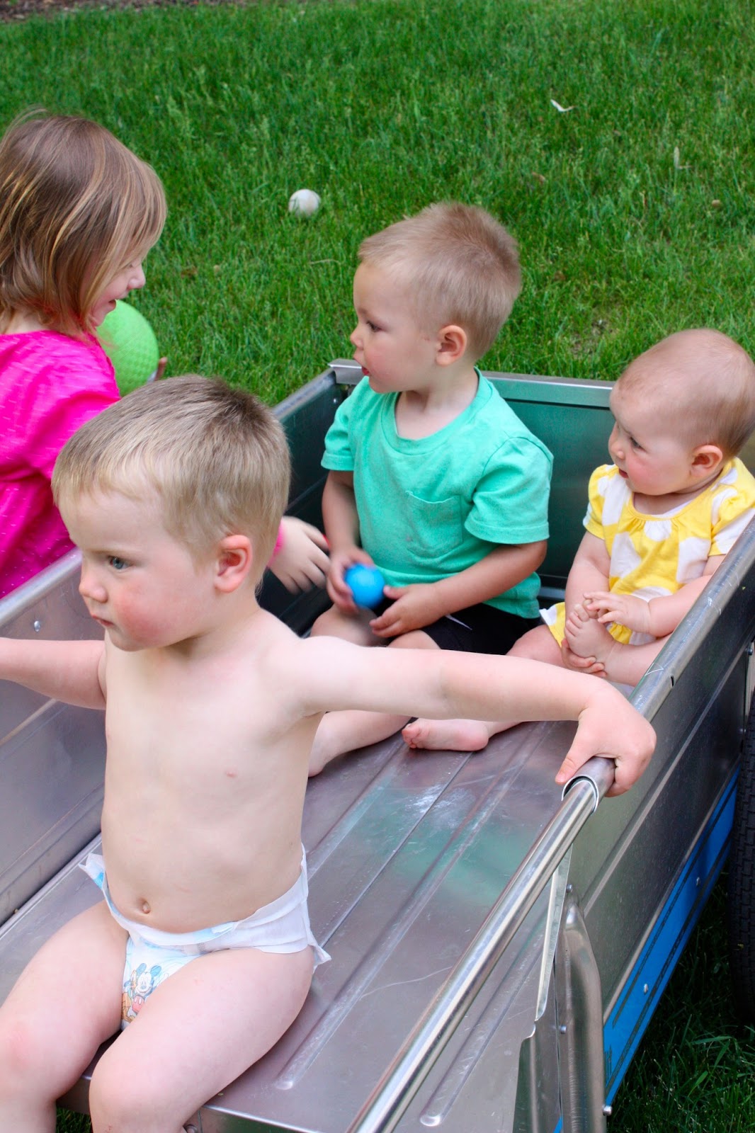 The big kids welcomed Olivia to the crowd with summertime finesse via wheelbarrow, playground balls, and the fine minimalist clothing.