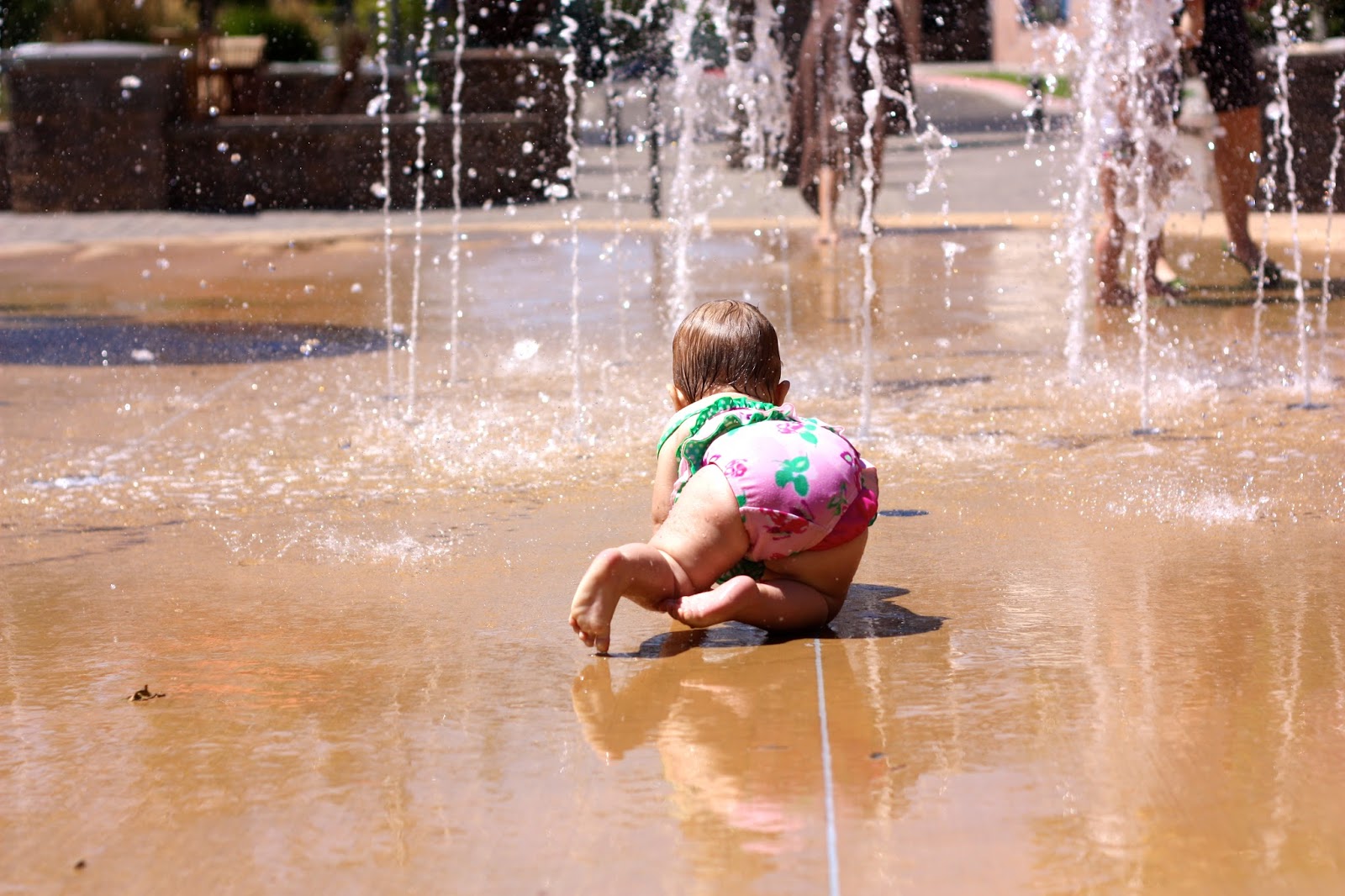 Bet she’ll smile more next time we go, since she’s “been here, done this,” you know. Ohhh her discoveries! They are so fun. How I love introducing her to the fun things of this world, even just a little splash pad. I think Olivia was born at the perfect time of year, because being a baby-turning-toddler in the summer has been a blast.