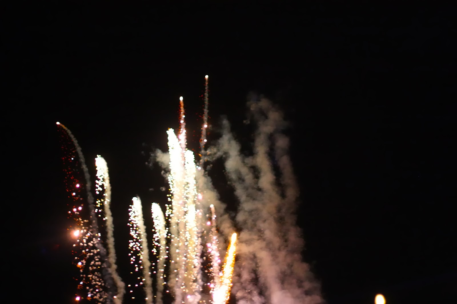 The fireworks blasted into the sky, just as the trees around us burst into glowing life. The night went from dark to light in the most awesome flash (light is amazing)! Olivia was not in love with the fireworks…