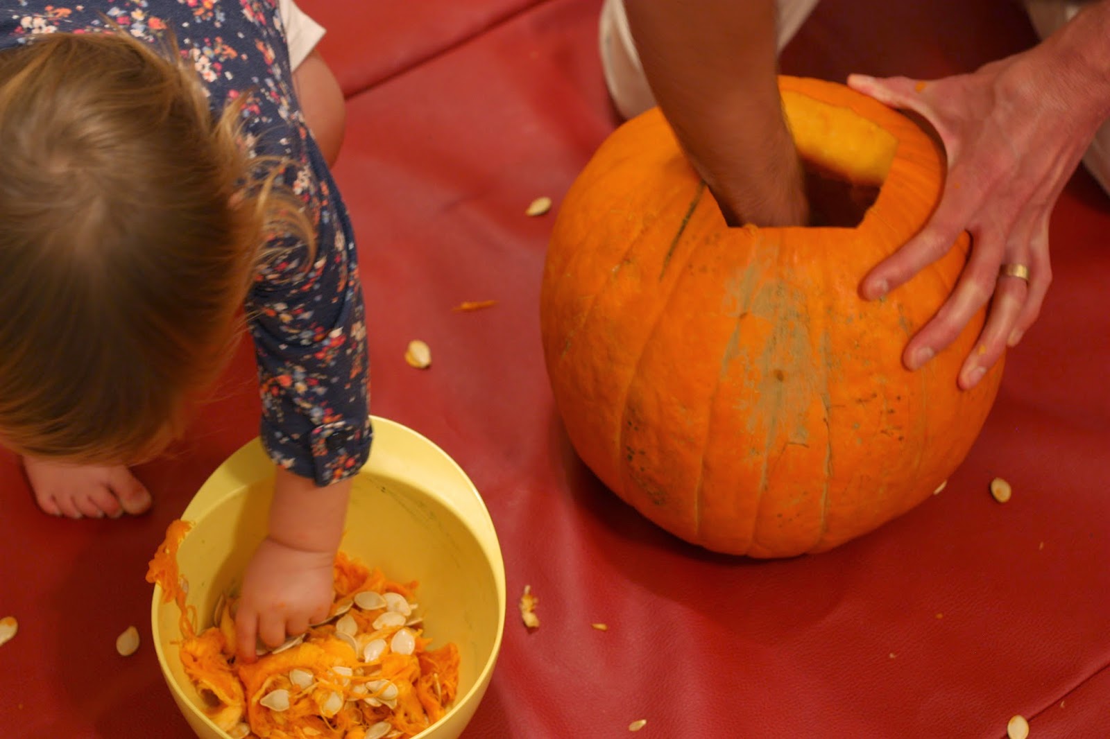 But this year has been different in every good way regarding traditions, and I blame it on the mega change called “the move.” Fresh starts in life can do wonders. As far as the fall traditions, so far this year we stole away to Carter Mountain, a Charlottesville classic, to apple pick and kick off fall+October. We went on a mini mini trip for fall break (DC)! We made a plan to carve pumpkins! Ryan came home a little early last night, Olivia determined that our pumpkin would be a cat, I picked up Trader Joe’s apple cider, and we listened to the Little Women soundtrack while the party went down (that music equals the holidays for me). And we had a blast. This was a novel experience for Miss O – those are always fantastic – and carving a good ol’ pumpkin with your own little family like you once did with your own bigger family was sweet. The feeling of home was really strong and I really liked it.