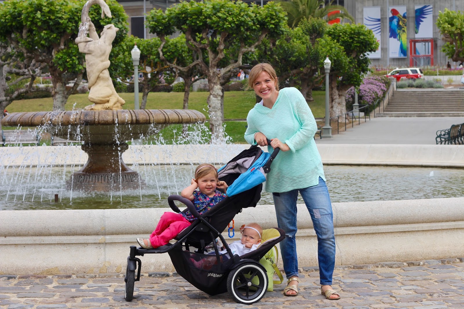 Ryan worked in the SF office on Wednesday, so we girls hopped up to the (big) City to play. SJ is quite the city, too (I adore living downtown), but SF is known as the City in these parts, so to the City we went. We only had a couple hours before Ryan finished working, so we did just a smidgen of Golden Gate Park. We went to the museum side, opted out of paying for admission into the science museum after all (too much $$ for our too little time), and instead soaked up the beauty while we found a good ol’ playground. Cannot go wrong with a playground! I try and make one part of the party for the girls whenever we’re out. Keeps them moving in familiar ways, AKA we all stay happy and sane.