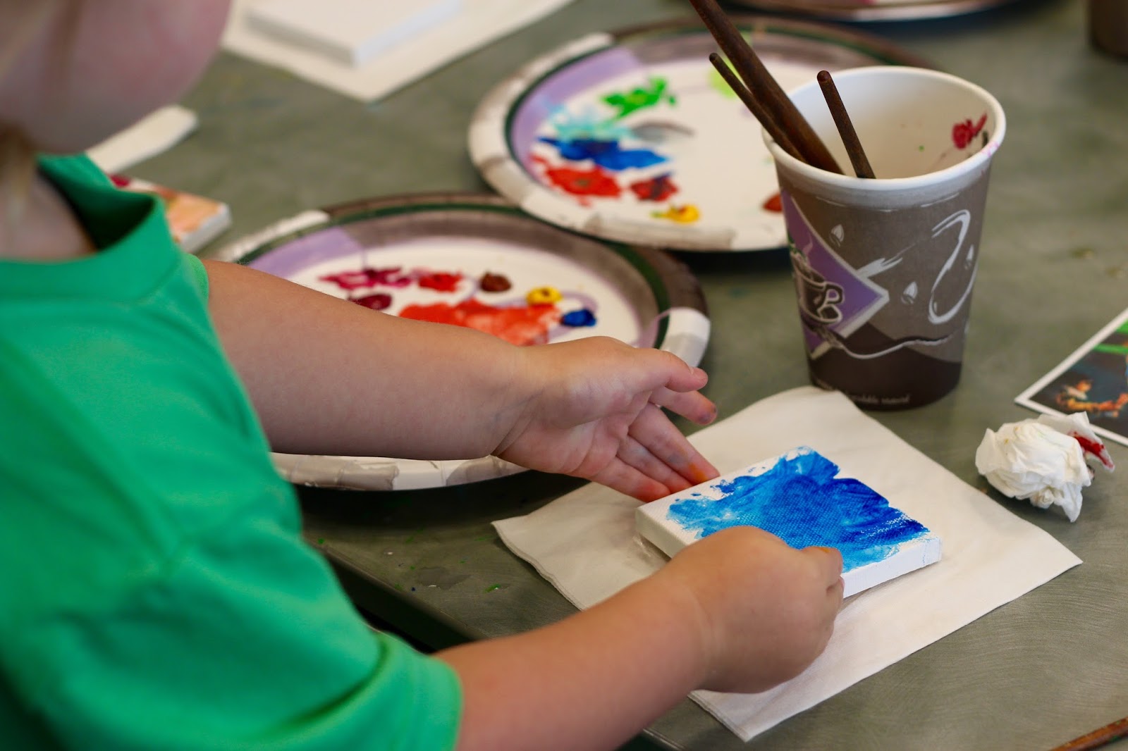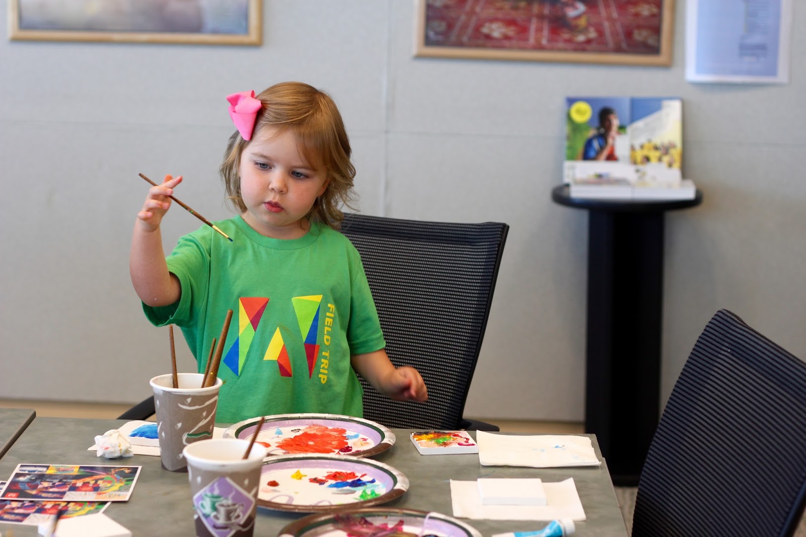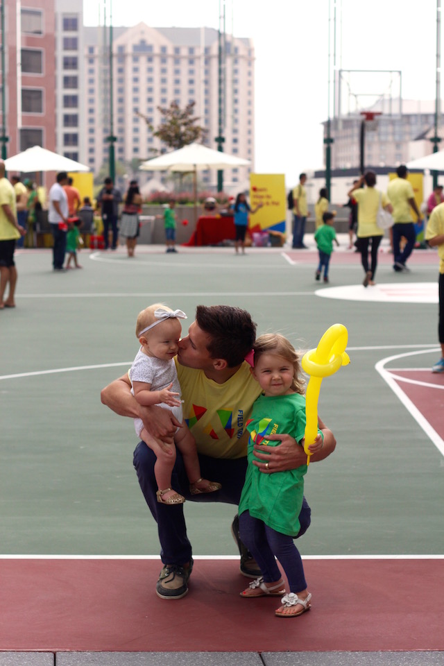 If could’ve seen my gironomo smile when we walked into the next room – the art room, we learned in two seconds. I mean, the itty bitty canvases, the amount of colorful paint, and the happy messes being made by all these families! How did they know that this is what we do?! Olivia and I fell into our groove. She painted blue, I went with gold. Can’t wait to put these somewhere at home in VA (we will be painting more with those tiny canvases. Oh my darling).