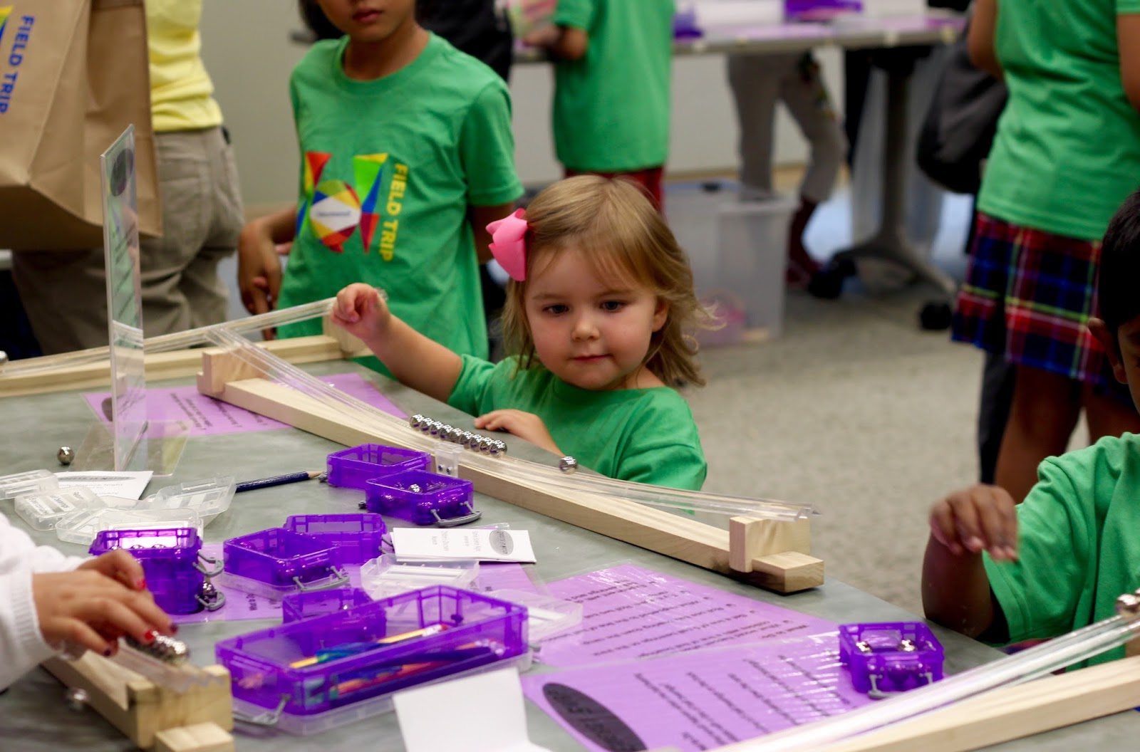 I’ve been hesitant to go to the children’s museum here because of the cost, but we have to go now — their workshop room captivated Miss O. I was surprised, too, because it was all about sciencey stuff, which I thought would be over her head since we haven’t probed that world yet, but the girl sooooaked it up! She had her concentration face on – a little half-grin, half-biting-the-lip sorta something. 🙂