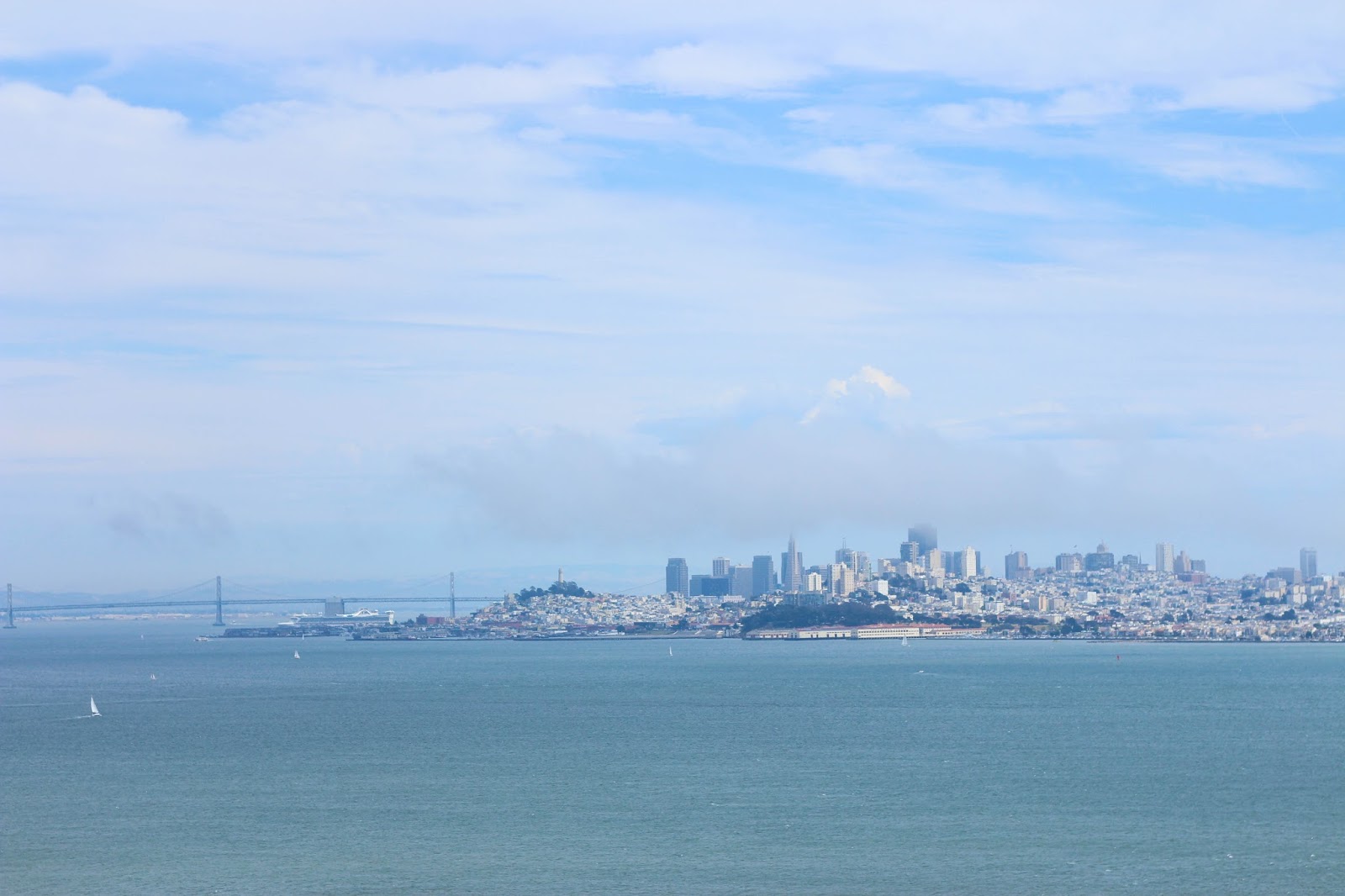 Dad + Uncle Ty + a distracted Claire Bear. I remember that we were all watching a guy sailing under the GG Bridge here – on one of those standing sail boats (do I even call it a boat??) He was basically on a surf board with a sail attached, and he was tearing those windy waves apart. We were entranced. People are so cool.