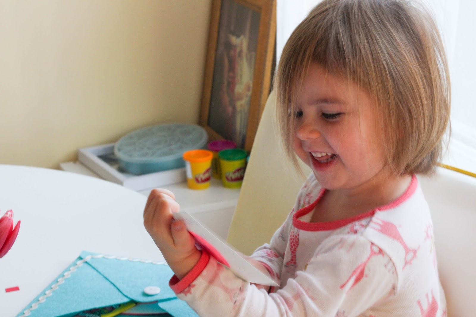 Olivia saw the blue envelope, she screamed “Pwesents?!” and then she squealed. My dreams came true. 🙂