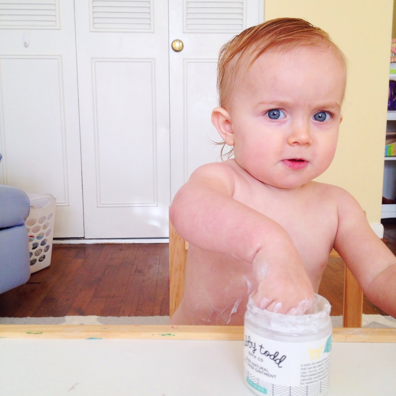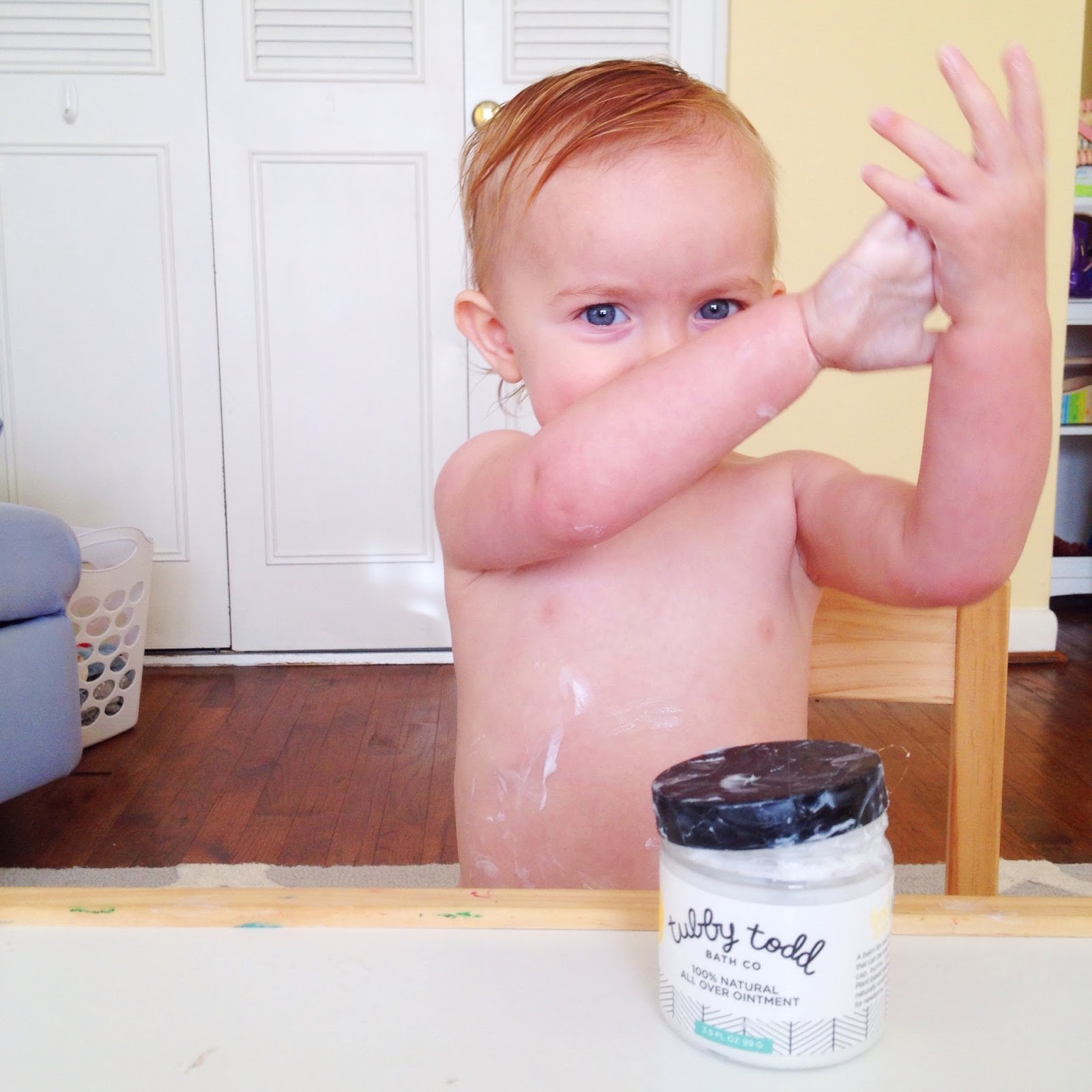 She believes that she can do everything by herself. IE, she has wanted to lather herself up with our favorite magical cream via Tubby Todd. Of course I’ve said no way Jose, since it’s not lotion, and I love that stuff soo much (can’t let a smear of it go to waste). I have yet to meet something that clears up skin issues so quickly. Diaper rash is gone by the next diaper change; it helps scrapes and scratches on the girls disappear incredibly fast; it zaps my blemishes (no shame)!
