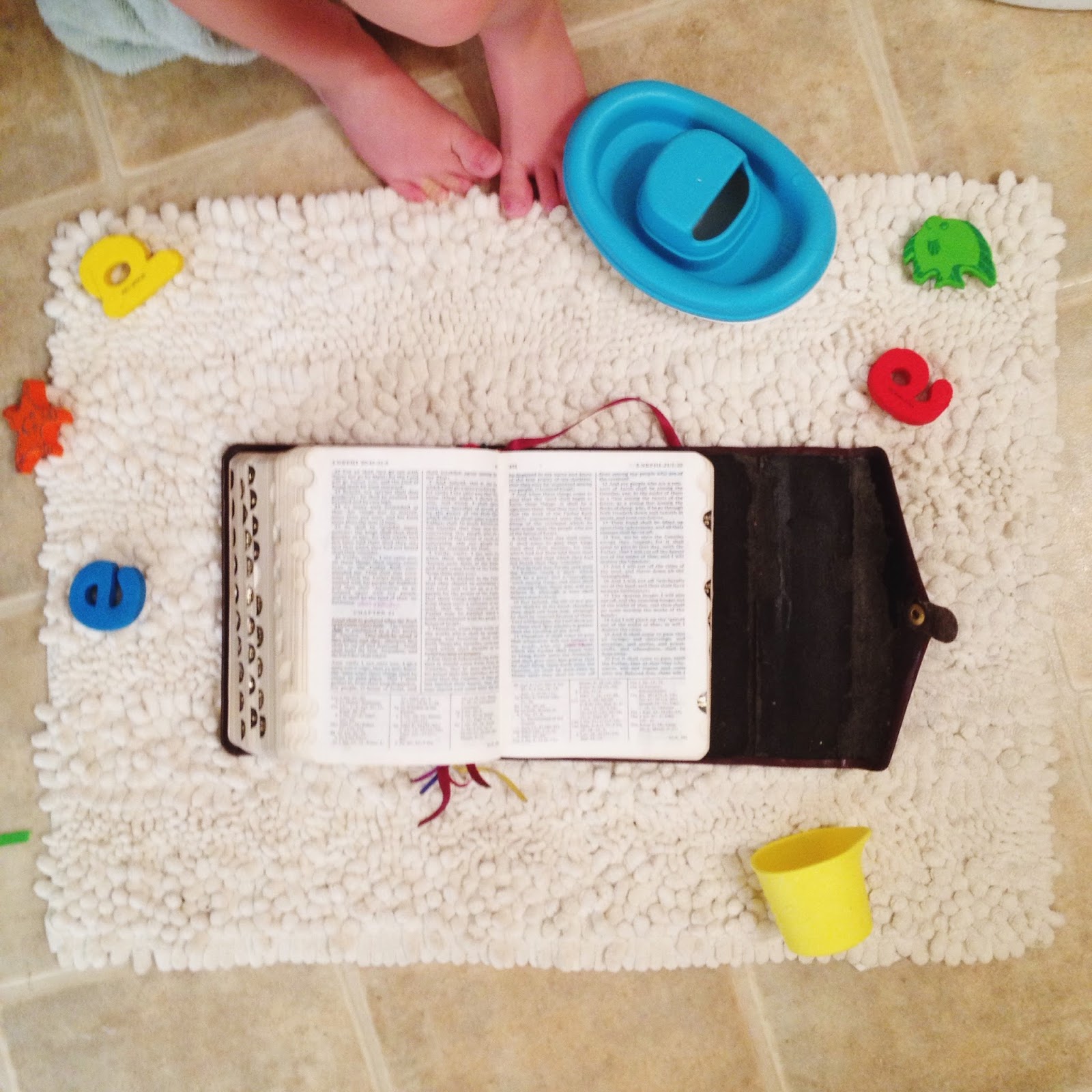 Pic via: the bathroom floor. I studied aloud there once this week while the girls took an early morning bath. I like to study as soon as I can in the morning, so I take what I can get. 🙂