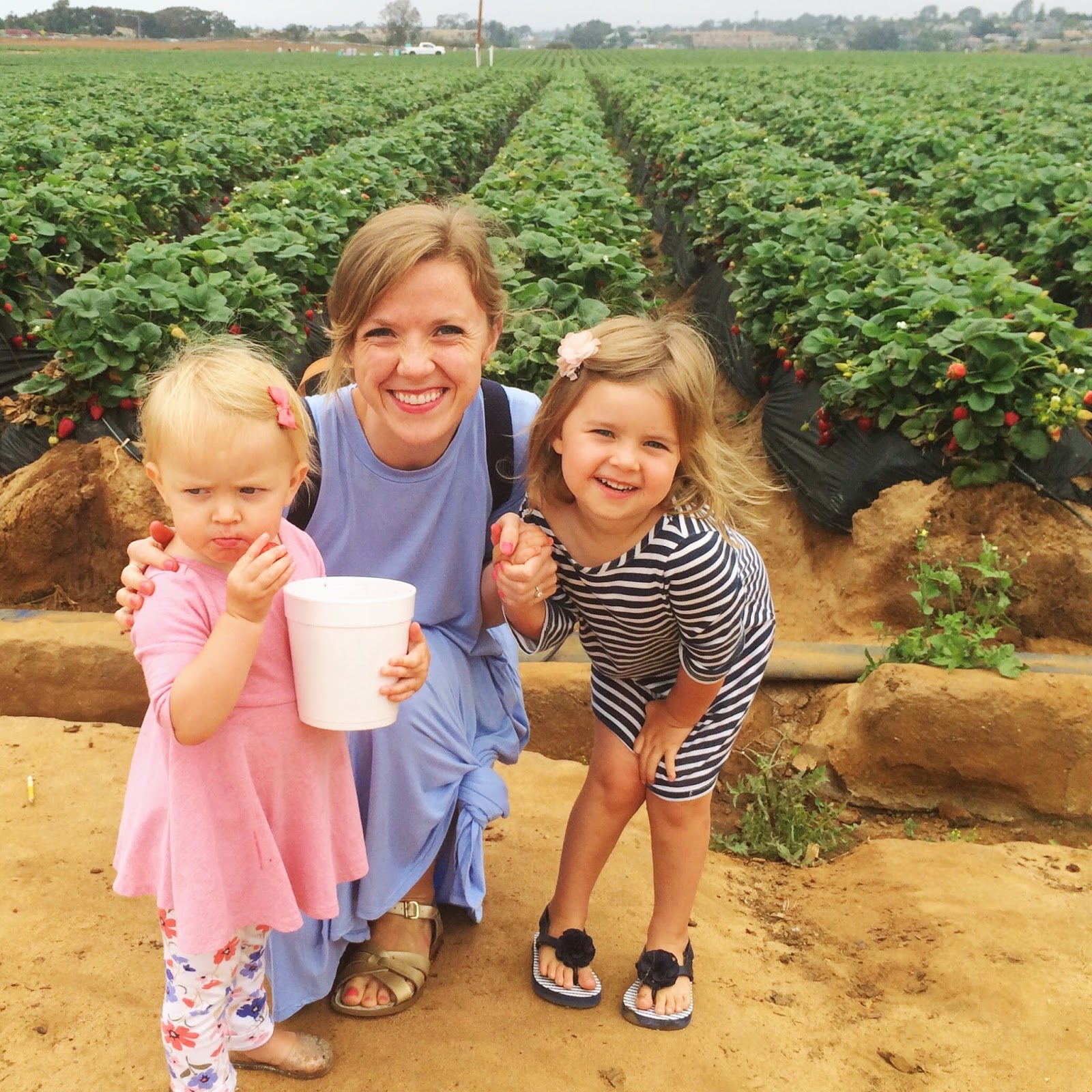 …the Carlsbad Strawberry Fields, duh! 😉 We went this AM and had such a party. Claire stuffed her faced the entire time, all while holding our styrofoam container while Olivia and I plopped in berries one by one. Miss Bear didn’t drop the container once, which was impressive, and Olivia impressed me with her memory as we pulled up to the field. “I’m pwetty sure I’ve done this before…” she remembered picking strawberries last year off the Coast in Santa Cruz! Made me smile. That was such an awesome day. Glad it made a sweet impression on her little mind.