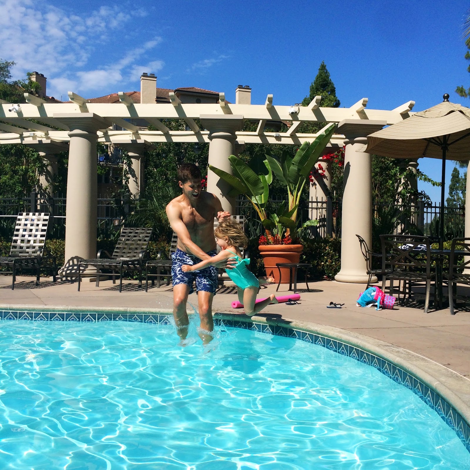 Saturday — we had our Daddy home! We swam, dashed to Finding Dory, and spent the evening in downtown La Jolla getting gelato for Father’s Day (at an incredible joint – when you come visit us we’ll take you there)! We watched the sun set over the ocean blue. Two of our man’s favorite things is ice cream and a Pacific sunset, so the night was fun. Except for the mega tantrums that ensued from both girls about 30 minutes in to the party. We were getting *those* looks from people about being *those* parents. Ah well. 🙂