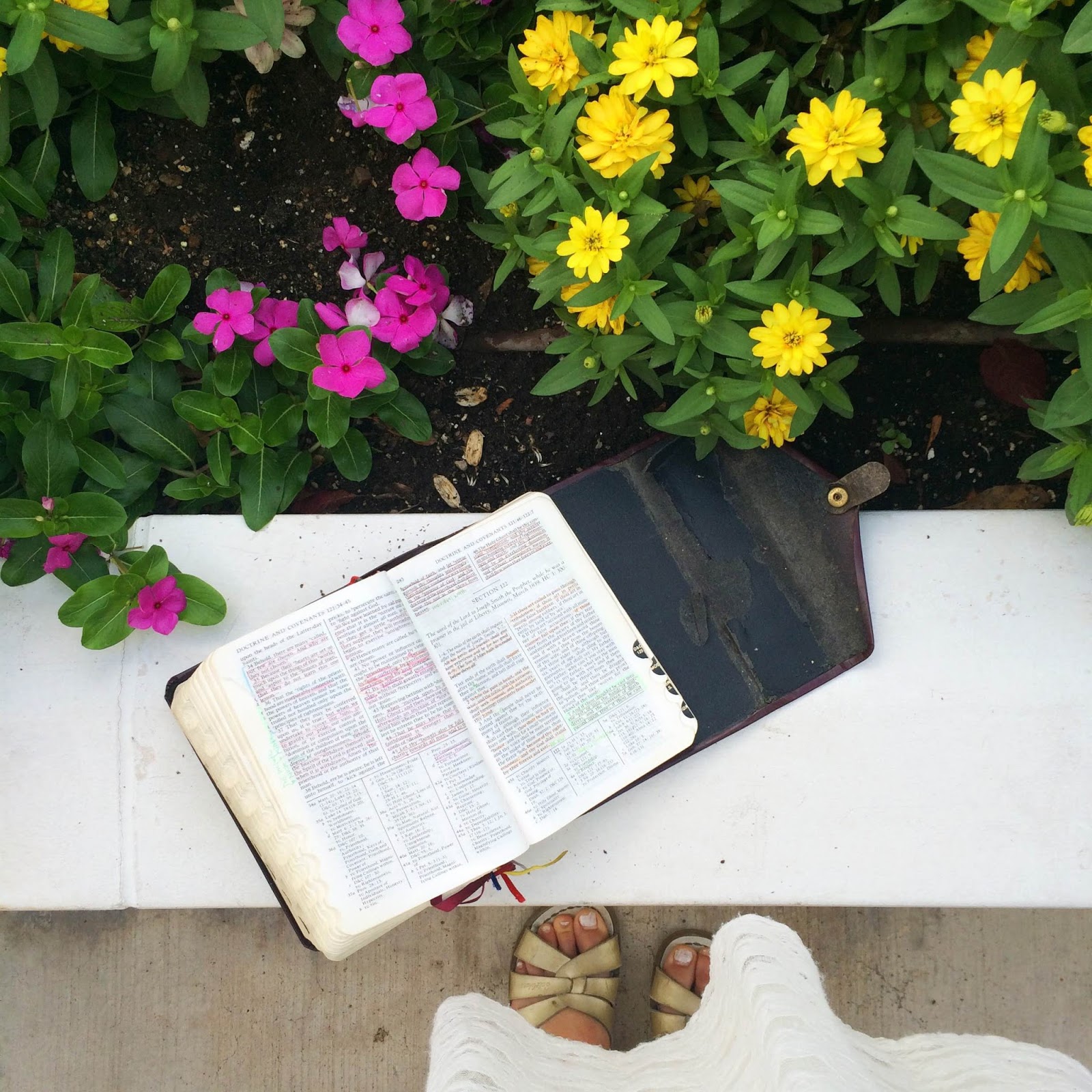 Pic via: the St. George temple grounds. I got up early to serve and worship there on our last day in St. George and then studied outside for a few minutes afterward, since going to the temple is *kind of* harder to do in VA. The closest temple to us in VA is the gorgeous DC temple, which is 2+ hours away. So yeah. Capitalized on that 10-minutes-from-me-temple while I could. 🙂