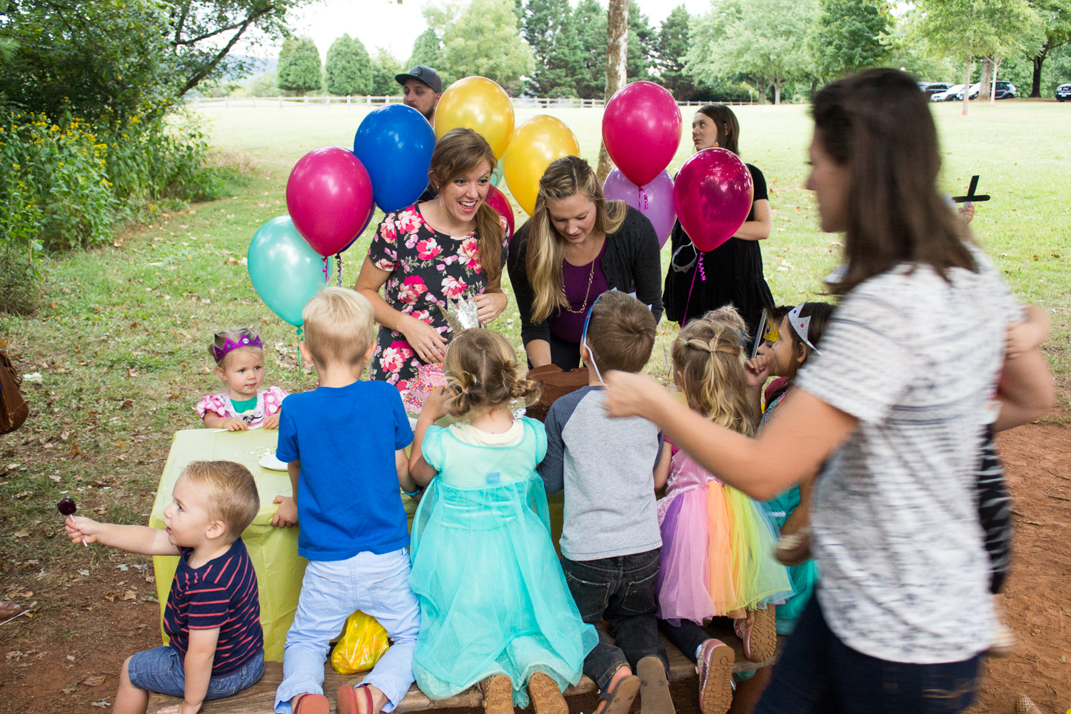 And then the kids went wild at the playground next to the party table, and they played till the sun went down on the bushy Virginia trees. It was a party – fit for our four-year-old princess and her darling prince. I couldn’t help but sit back and soak it all in, surrounded by our friend-family here and with the echo of our children’s laughter everywhere. The kind of scene is the marrow of motherhood for me. Doing my small part to bring my sweet daughter genuine joy – and her sister and her friends – that is magic materialized for me.