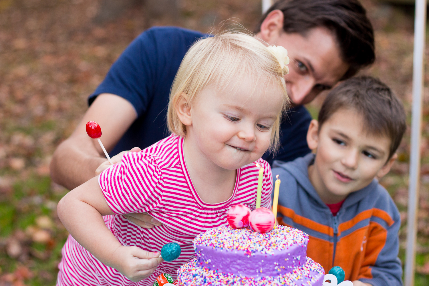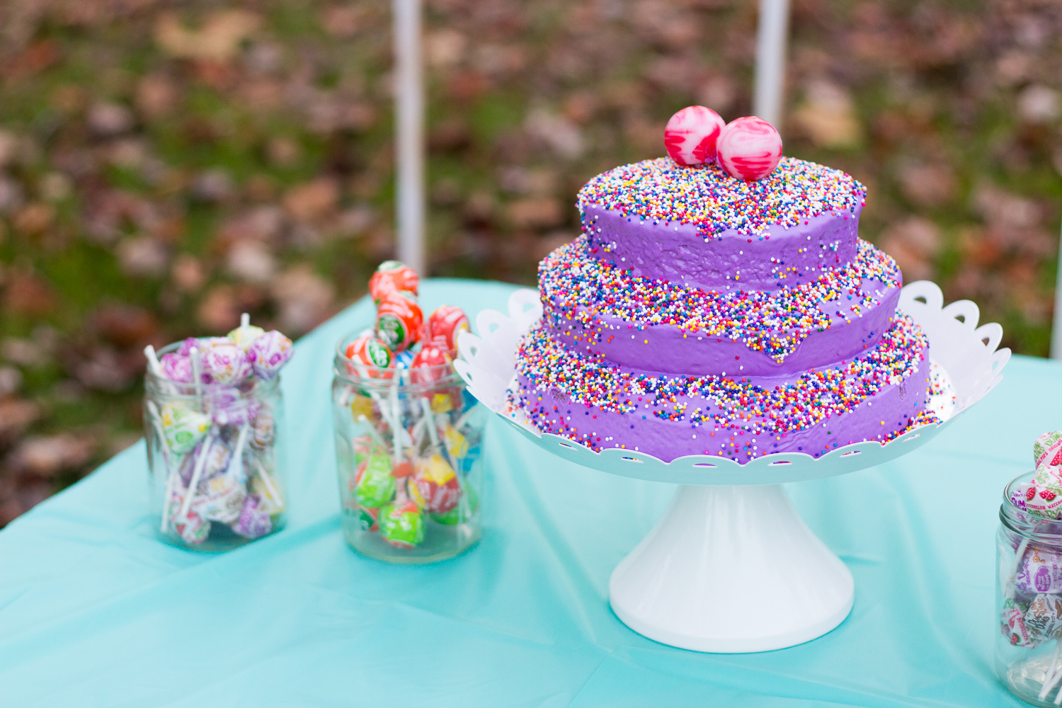 To celebrate the booming life in that beauty, I asked her what kind of birthday party she wanted and to my surprise, she had a specific, concise opinion: “A sucko party.” And yes, just suckers, that was it! Oh – and a purple cake. She wanted a purple cake with candles (such a tough client, that one)! The friends Claire knows best were invited to the park, and per the birthday girl’s request, we had SUCKERS…