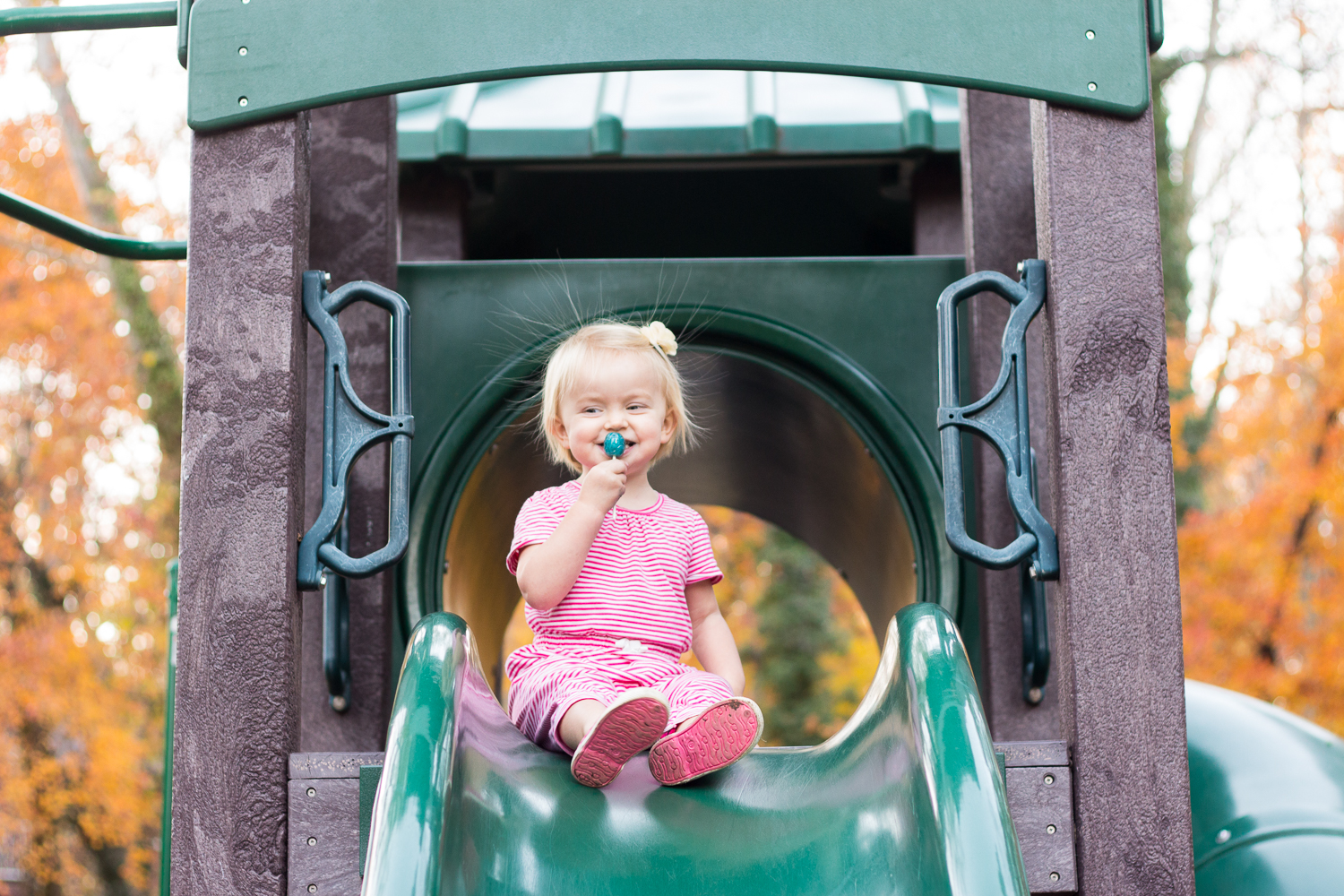 I found her up at the top of the slide just like that – just sitting and smiling at her currently sugary world. Mmm I love that child!!