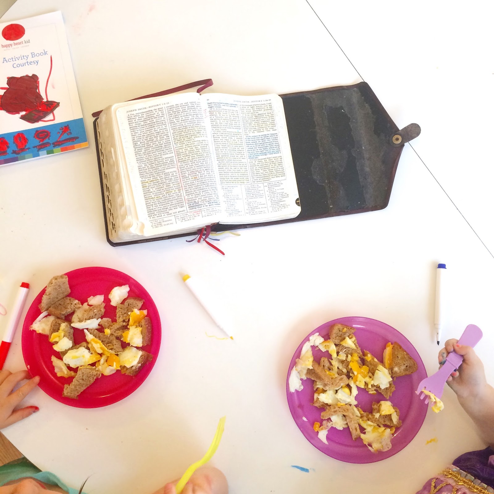 Pic via: the Sunday morning breakfast scene this week. The girls worked on coloring an entire (small) coloring book while I cooked, and then (you know how it goes) I took a seat and spiritually filled my soul while they physically filled theirs…
