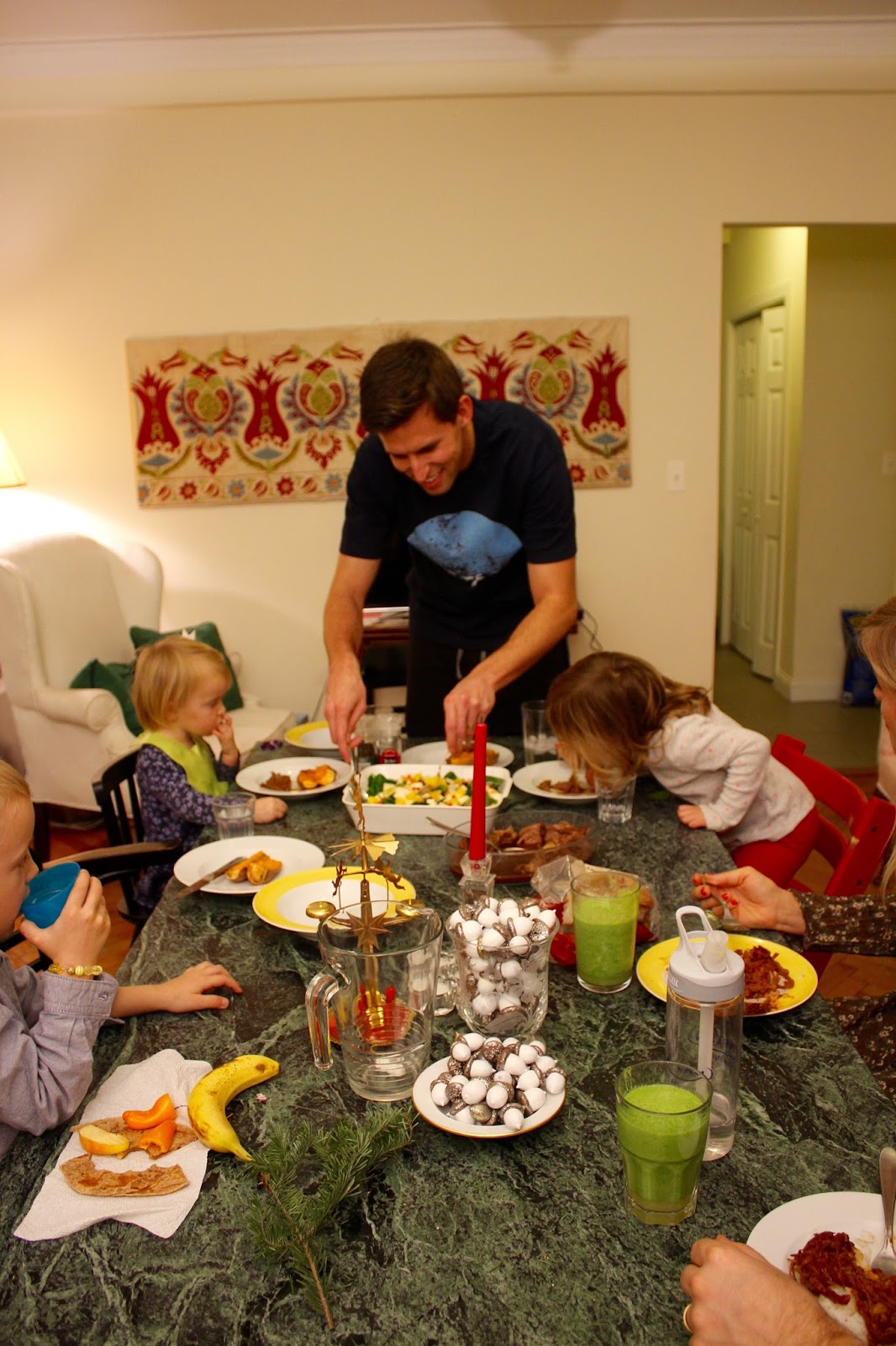 Our families were angelic and sent a handful of gifts our way from UT (those two piles at the end of the coffee table up in the first pic). It was so nice to have a piece of them with us!! I was a stinker and didn’t get my packages to them on time (sorry fam!! They should be there now)! Good thing I won’t even have to go there next year – we’ll be driving our gifts up stragith from SD (crazy and amazing to think about).