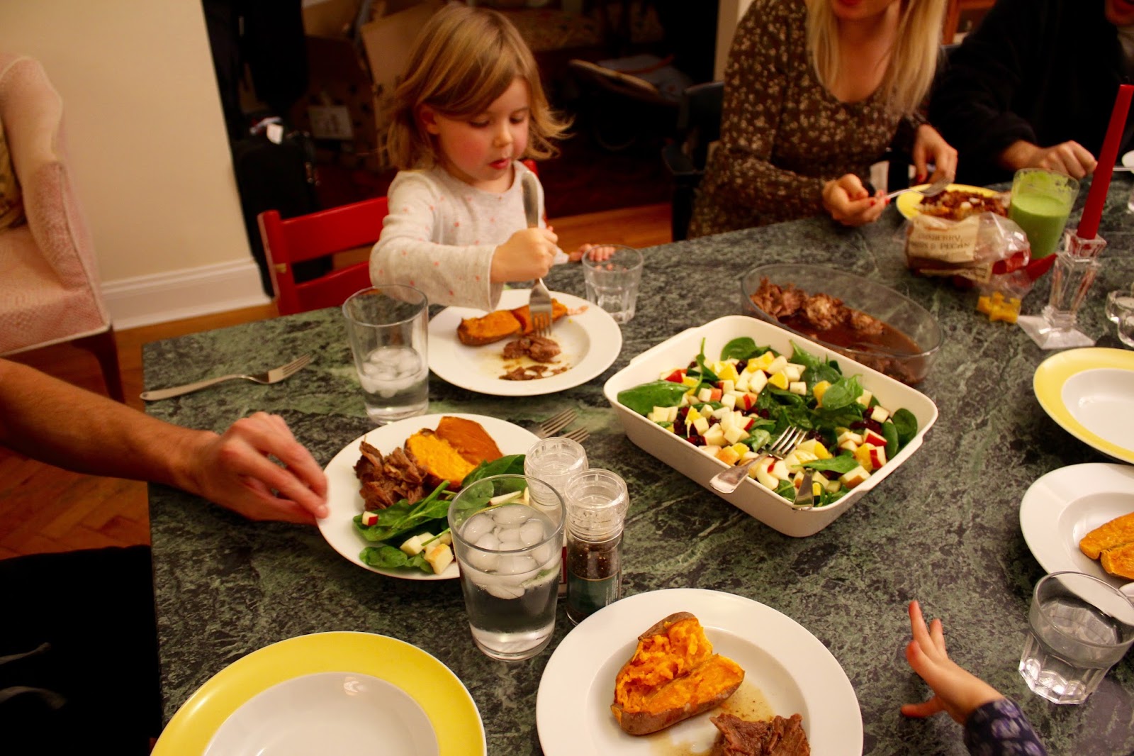 After opening presents and playing, we ran up a couple blocks to attend church (stopping for a quick family pic on the prettiest stoop on the street – my pic here, Ry’s pic here), and since the Christmas Day was as glorious outside as it deserved – sunny and warm! – we left church for Central Park and walked and walked and walked, talking to our families all along the way on FaceTime (what’d we do without FaceTime?!) Eventually we made it back home for a simple Christmas dinner with our dear friends…