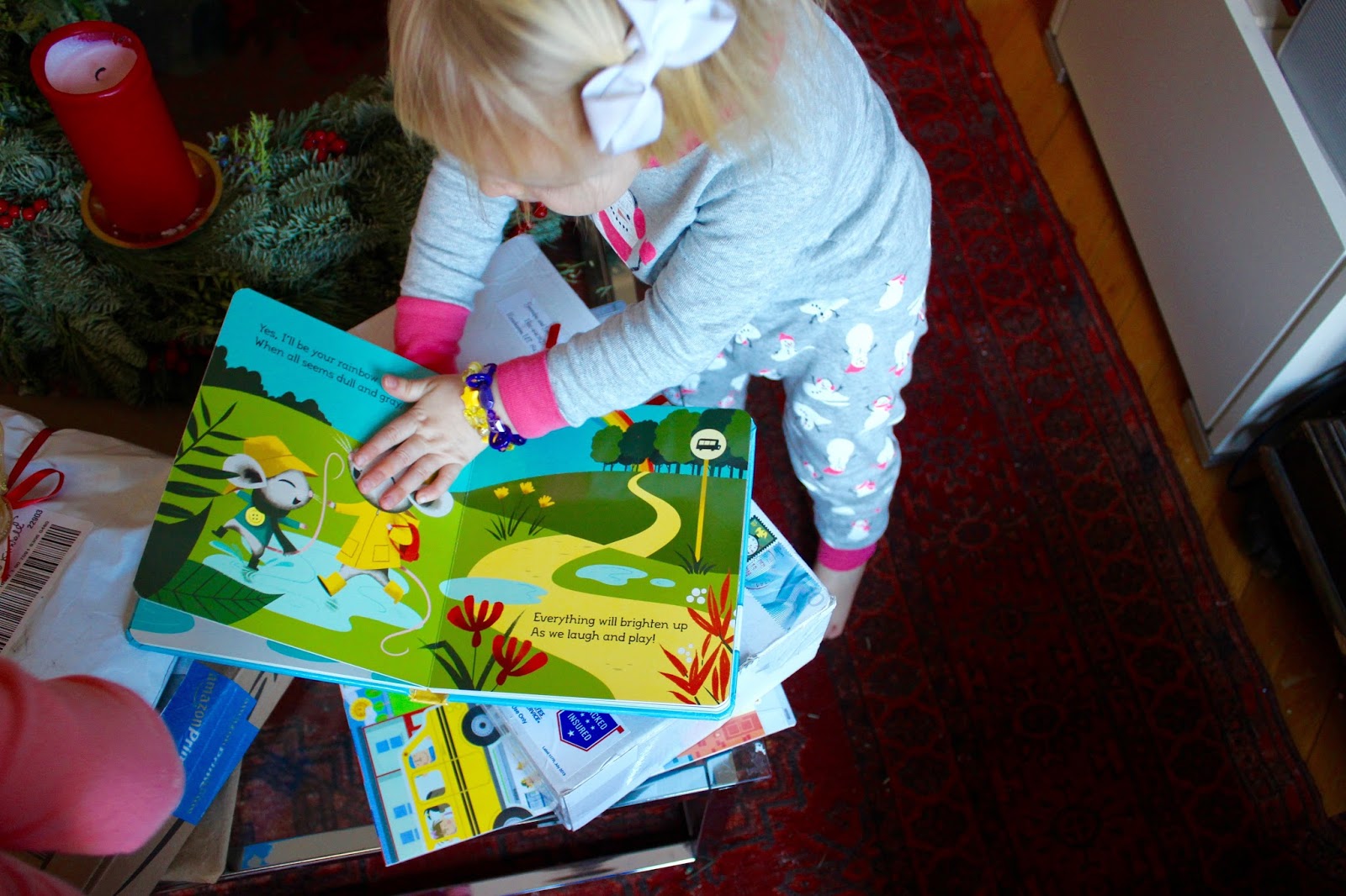 (Olivia had just told us here that Mrs. Clause and Rudolph snuck into her room and snuggled with her on Christmas Eve night. Um, YES. Hahah, that girl!)