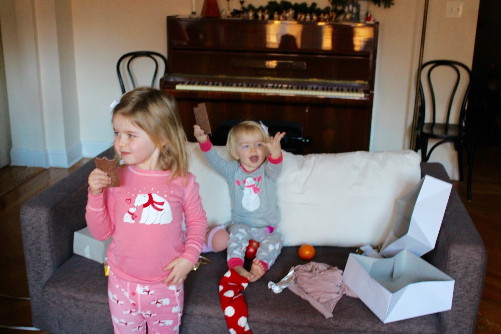 They loved their stockings – ha thank goodness! Stockings slipped Santa’s mind this year, truly, but at the last second, he gathered up an apple, an orange a milk chocolate bar. Hallelujah, little kids are so easy to please.