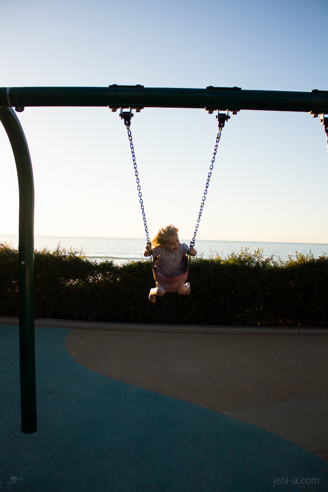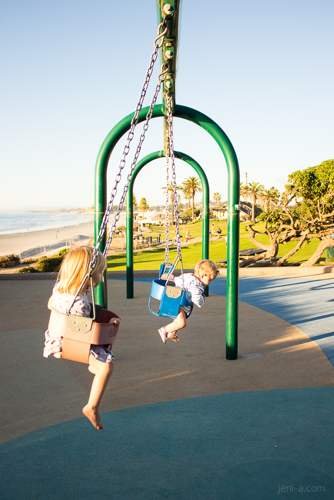 Pics via — one of the most magical playgrounds ever to grace the earth. Powerhouse Park sits right above the beach, so you just have to sit and gawk at the ocean while you play (bummer 😜). It is the best and one of our favorite places here. I took my camera the other day when we went for a couple hours after Emmy’s afternoon nap. I had to PRY the girls away after the sun set. We love you, SD!!