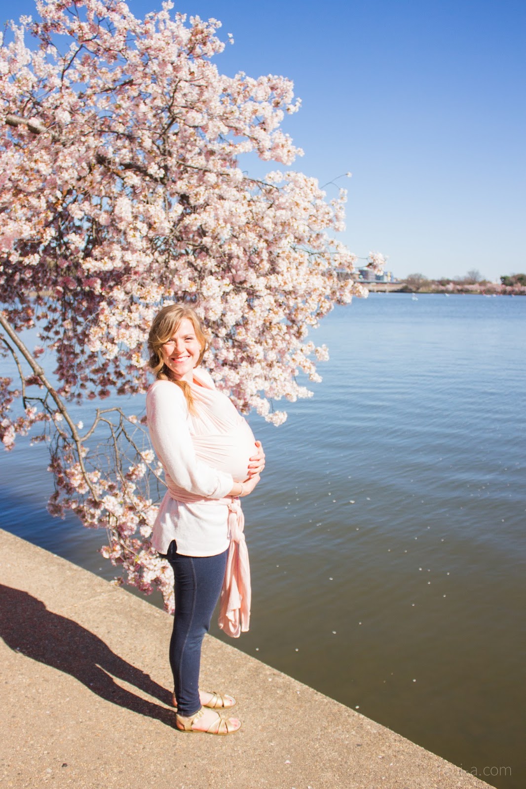 Emmy was 10 days old and the Cherry Blossoms were at their peak. We drove up to the city after Ryan’s class in the morning, loving on our favorite route, rural Highway 29 in all of its spring-green glory. We parked behind the Jefferson Memorial – the best lot for snagging an easy spot. Emmy lasted 10 minutes in the stroller; Baby Girl was much happier in the wrap. We took our sweet time walking around the lake, exactly at the girls’ pace. The girls were happy, Mom and Dad were happier. An adventurous day out on our feet was everything we needed. The blossoms were dainty and bright, scattered across the sidewalk and the water — and the air, if the wind picked up just right. Everything was beautiful.