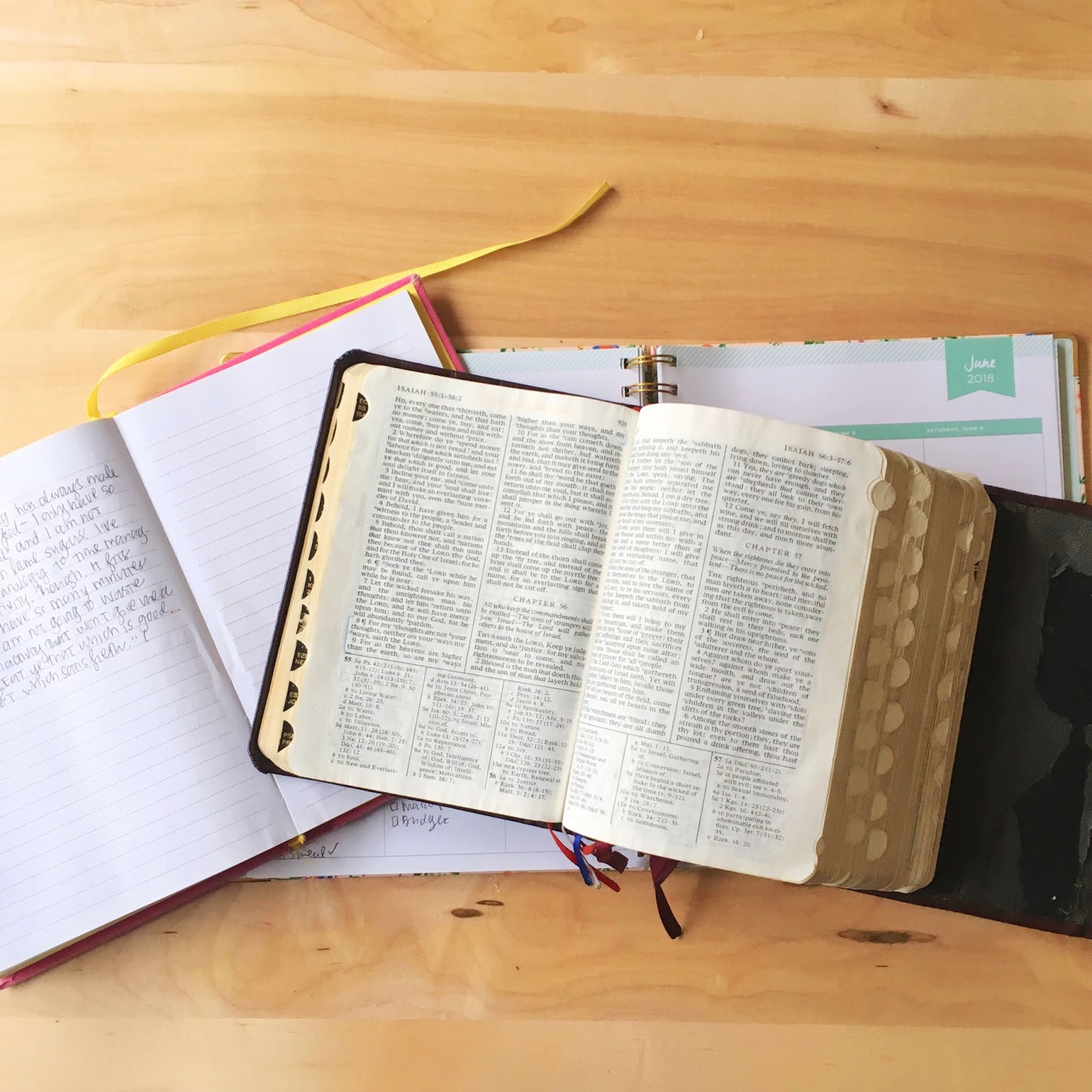 Pic via: my most frequented spot for scripture study this week — my good ol’ kitchen table. I’ve been 50/50 for the last few months regarding studying super early and on my own before the girls wake up and studying aloud while they’re with me. I like both for different reasons. It’s nice to read and ponder without three wee ones asking me questions, and then it’s so nice to have those three wee ones ask me questions. I’ve said it before — NO ONE has challenged my faith, knowledge of Christ’s gospel, and my personal testimony like inquisitive Olivia. Claire is gradually following suit, too. Answering them has been such a gift to me. And then quiet mornings all to myself like this one — they’re a sweet kind of gift, too. 🙂