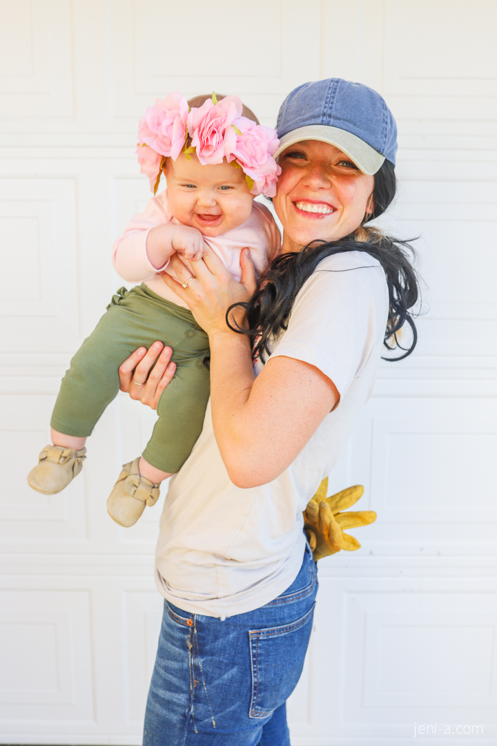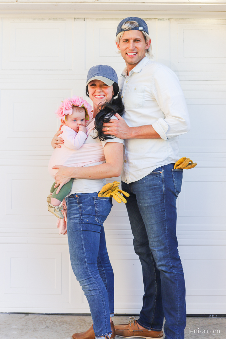 We are the gardeners (Chip and Jo!) and this is our flower child. 🙂 I knew that Chloe would be hanging in the wrap with me during our church Halloween party, and since our wrap is pink, turning her into a flower first came to mind. Well what’s a flower without a gardener, if not THE gardeners of 2k19??
