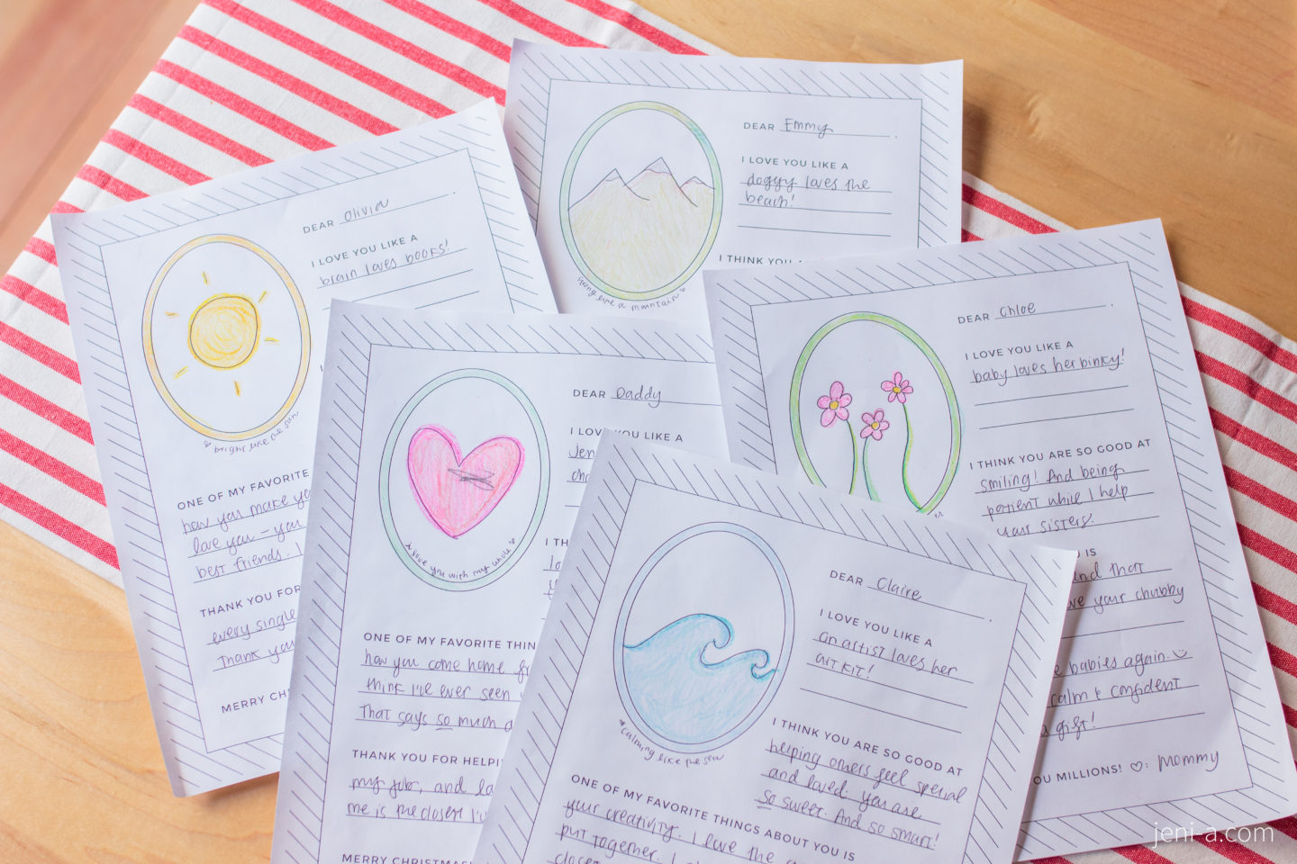 We did a handful of really awesome things in an effort to carve out our own traditions for Christmas, but I do regret that I didn’t help the girls make sister gifts happen. I was done with all of my Christmas shopping on Black Friday, and the girls only asked about giving gifts to each other once, so initially I felt efficient by not taking them shopping for each other but gosh, there is something so, so sweet about siblings being thoughtful of each other and loving via special little presents. So! Next year or else, we’re exchanging sister gifts. I did try to redeem us this year with these last-minute love notes below — I had the idea pop into my head for each of us to fill out the little notes below (I made them in about a minute in Illustrator) for every member of the family and to leave them in our stockings to read on Christmas morning. Christmas Even found us all huddled around the table talking, drawing, and writing about each other and sheesh, talk about dropped balls bouncing back — the whole thing was a hit. We’re repeating this one next year plus sister gifts. Or else. 😉