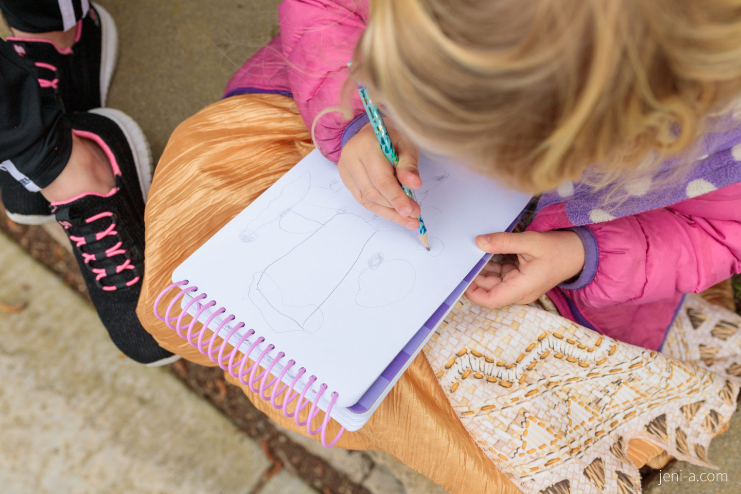 We sat there and sketched for as long as Chloe let us, which was about 15 minutes. Olivia and Emmy ran home pretty quickly as soon as it was time to go, but I had a hard time prying Claire away, which made me smile. Kids elbow-deep in creative zones is THE BEST.