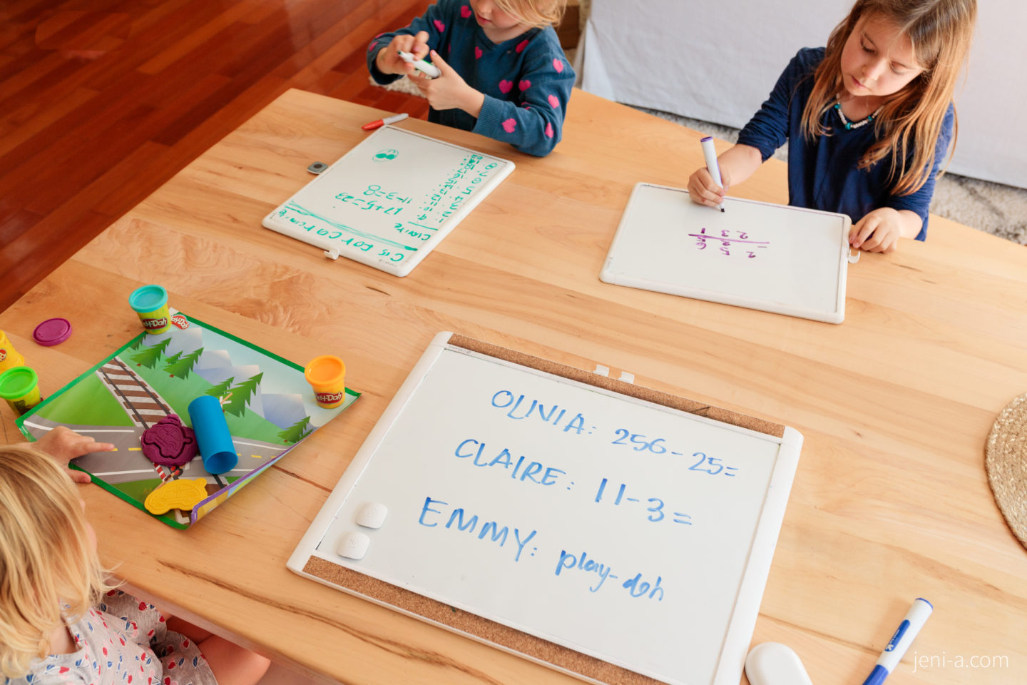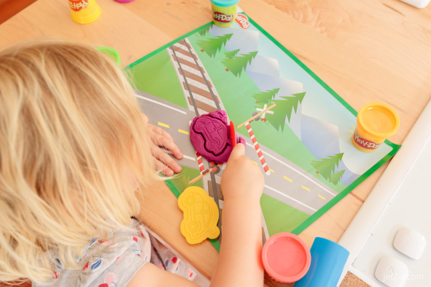 Sidenote — I keep meaning to share adaptions of the lesson in case you have toddlers hanging out with you, too, like Emmy. Emmy is always with us during school, but she’ll come and go during the more advanced portions of the lesson, like when we’re doing math, or she’ll hang if I come up with an alternate activity. Making cars out of play-doh was a no-brainer for her and this lesson, so she hung with us and made some cars. Toddlers can soak up more information than you realize, so if there is a concept that you can water down for your toddler, let them hang and just re-explain the material in a super simple way. Like the YouTube videos we watch in our lessons — Emmy gets it (more than I think she does, honestly), and especially especially clicks with the concepts after I re-teach them. Again, their comprehension (and retention!) will surprise you, and including them will help them feel valued and “big.” Win-win. 🙂