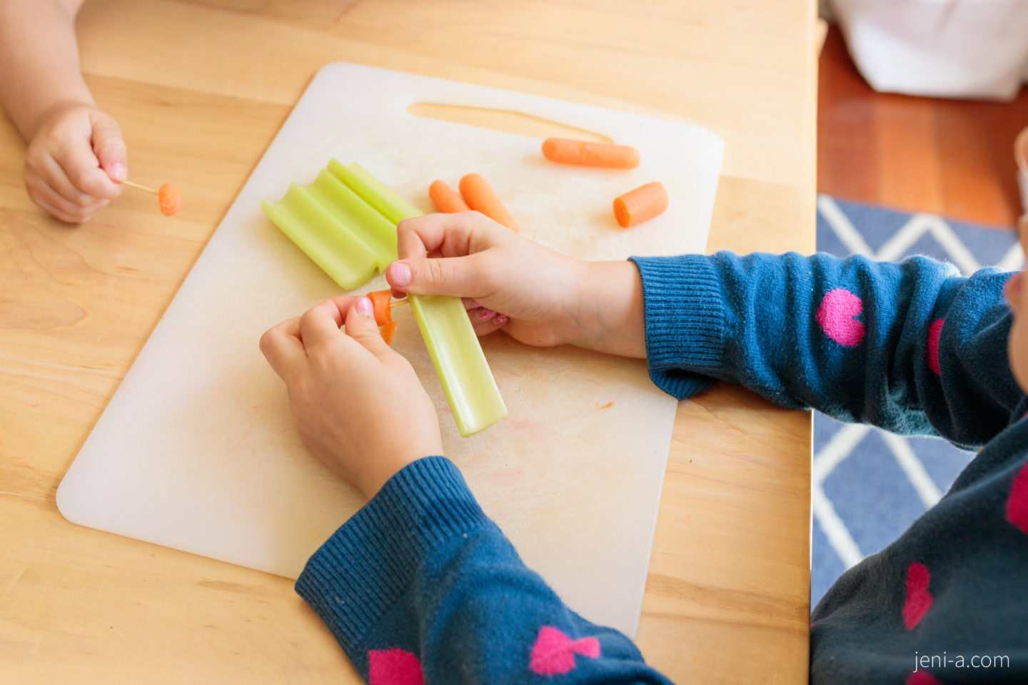 Olivia made the banana cars, Claire made the celery and orange cars, I made the pepper-tomato car, and Emmy really got wild and made a model remote-control car. 🙂 And then we ate our cars, and threw on “CARS,” the movie, as a fun cherry-on-top.