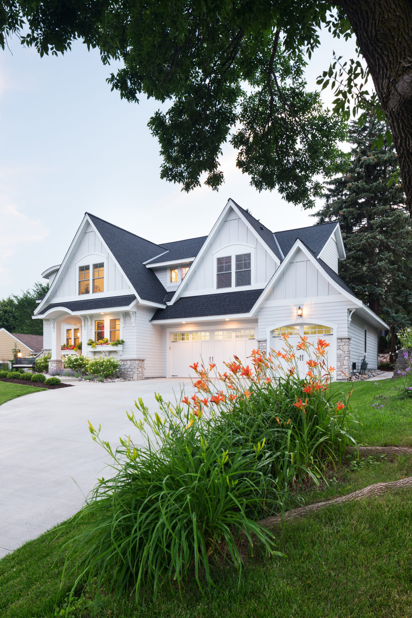Charming board and batten + classic siding + subtle stone // image via